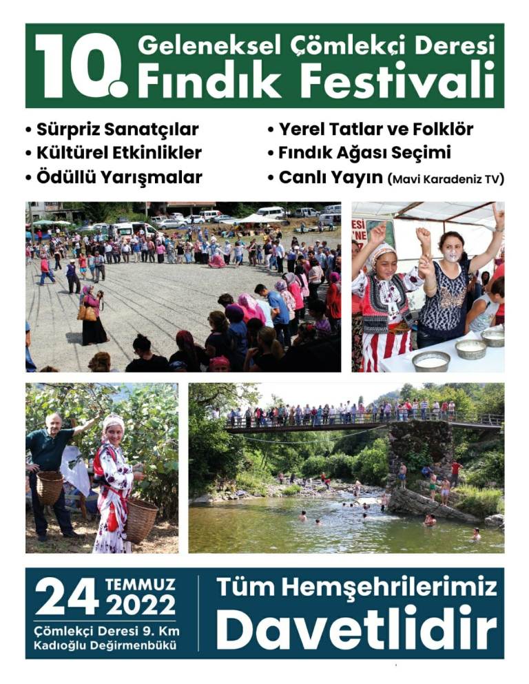 Pandemi nedeniyle iki yıl aranın ardından bu yıl 10.su gerçekleşecek olan Geleneksel Giresun Çömlekçi Deresi Fındık Festivali'nin 24 Temmuz Pazar günü düzenleneceği duyuruldu.
