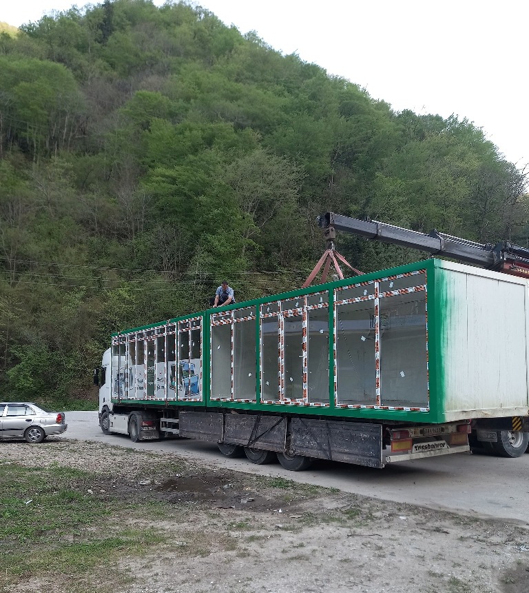 Doğankent'te yaşanan sel felaketinde kurulan ev ve işyerleri konteyner deprem bölgesine gönderildi.