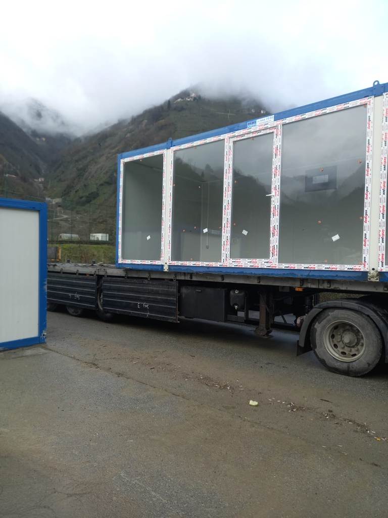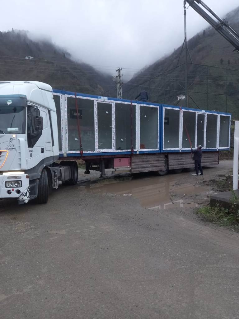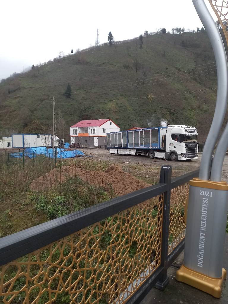 2020 Ağustos seline maruz kalan Doğankent ilçesine AFAT tarafından kurulan konteyner ev ve işyerleri Düzce ilinde kullanılmak üzere tırlarla yola çıktı