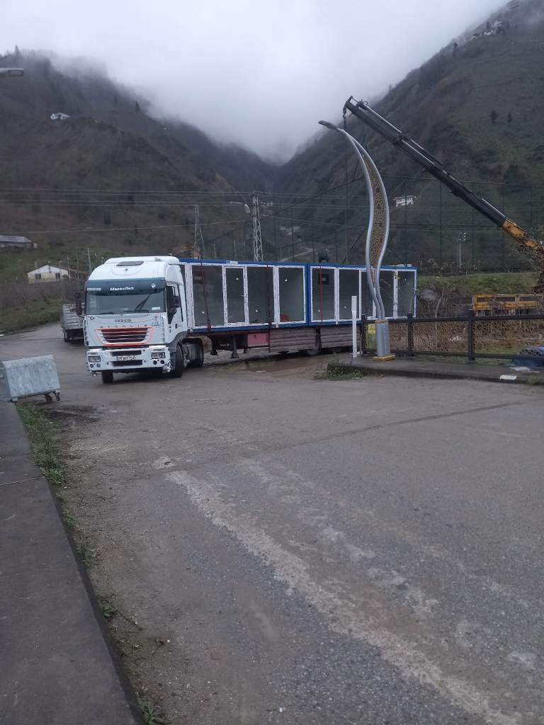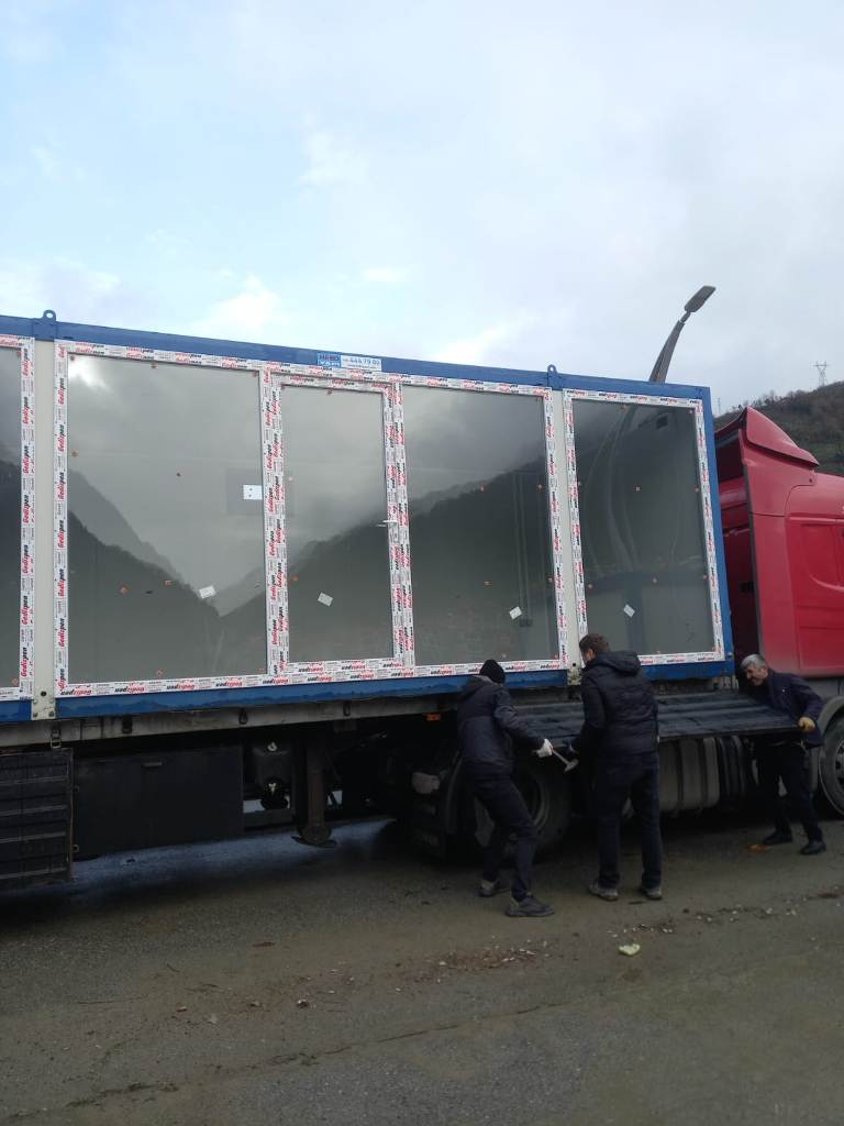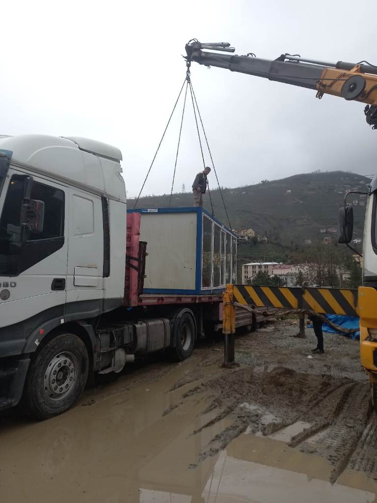 Doğankent ilçesinde AFAD tarafından kurulu bulunan afet konteynir evler usta Hayrullah Aydın ve ekibi tarafından işyerlerine dönüştürüldükten sonra Düzce ilindeki Afatzedelerin kullanması için tırlarla yola çıktı.