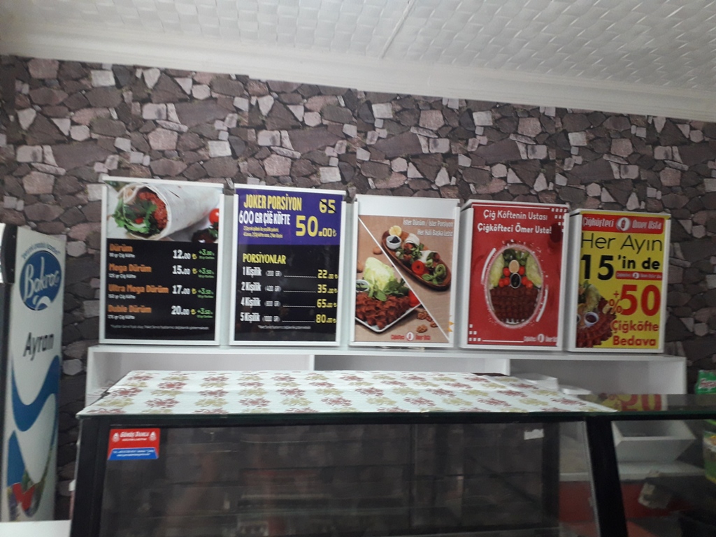 İşyerinde, Çiğ Köfte, Dürüm, Mega Dürüm, Ultra Mega Dürüm, Duble Dürüm, Tavuk Dürüm, Ayran, Meşrubat Çeşitleri ve Hamsiköy Sütlaşı verilmektedir. İşyeri sahibi Erhan Şağban, Hizmet Bizden Tercih sizden dedi.