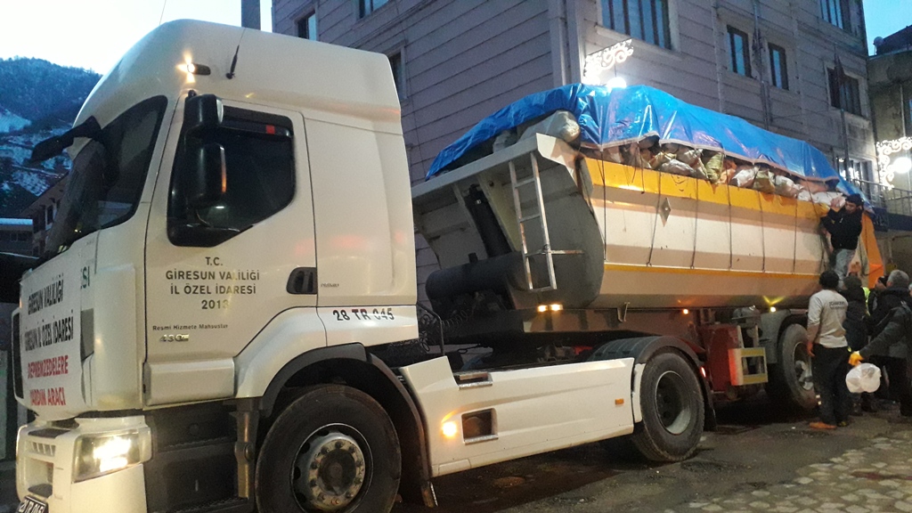 Doğankent Belediye bahçesinde toplanan odun ve Fındık kabuğu Kaymakamlık ve Belediye yetkileri gözetiminde Giresun İl Özel İdaresi aracına yüklenerek Malatya'daki depremzedelere ulaştırılmak üzere yola çıktı.