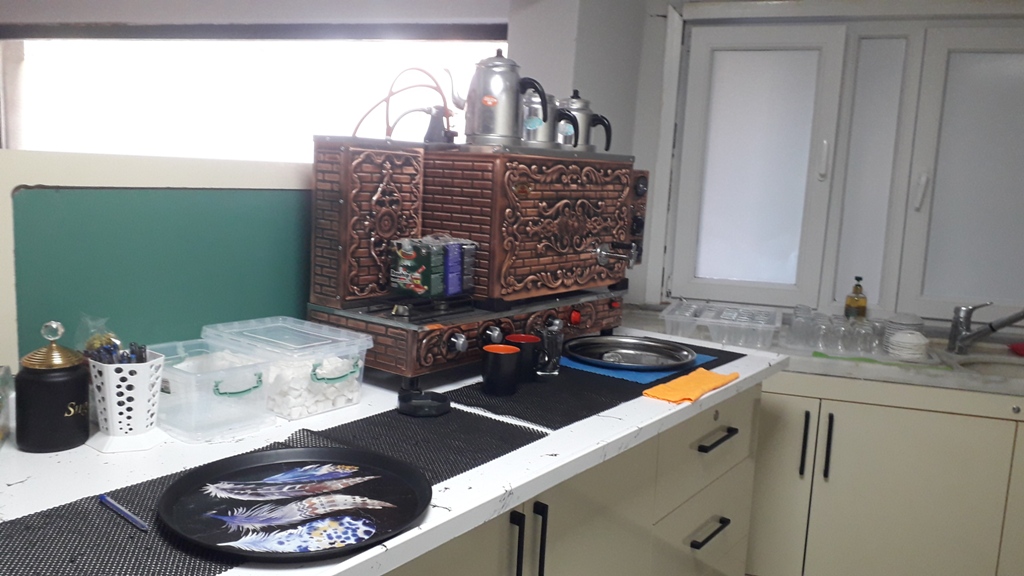 İşyerinde, Çay, kahve, oralet, kuşburnu, karadut, kivi, nane-limon, su ve meşrubat çeşitleri ile müşterilerin hizmetindedir.