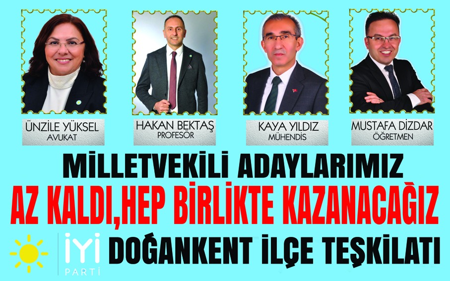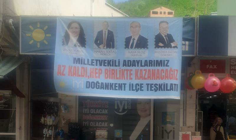 Neyse seçime çok az bir süre kaldı, İYİ PARTİ yerli ve milli kadroları ile geliyor. Bütün Türkiye'de olduğu gibi Doğankent'de de AK Parti'de büyük bir kırılma ve kayma görülmektedir. Birebir konuştuğumuzda vatandaşlarımızda bunları görüyoruz. Bizim bütün amacımız bu ucube sisteme son verecek, çalışmalarımızı zaman mekân gözetmeden sürdürmekteyiz.