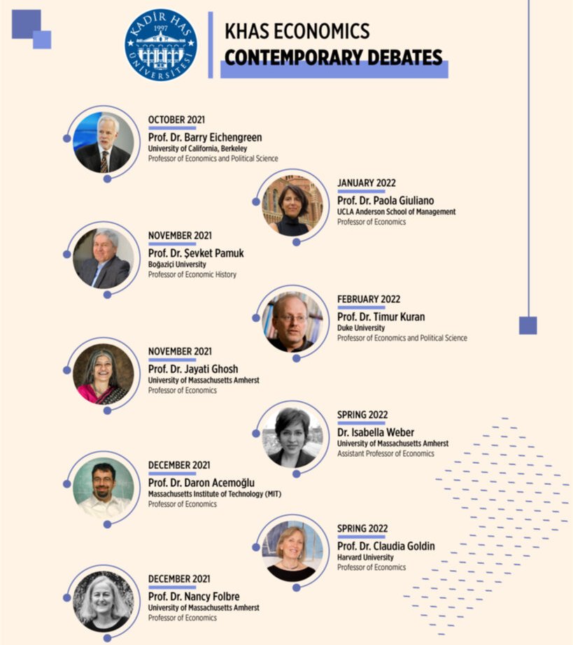 Serinin 2022 yılındaki ilk konukları, UCLA Anderson İşletme Okulu'ndan Prof. Dr. Paola Giuliano ve Duke Üniversitesi'nden Prof. Dr. Timur Kuran. Bahar döneminde ise Massachusetts Amherst Üniversitesi'nden Dr. Isabella Weber ve Harvard Üniversitesi'nden Prof. Dr. Claudia Goldin'i dinleyeceğiz.