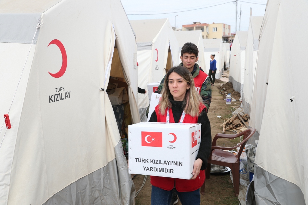 11 ili etkileyen depremin ardından Kızılay tüm afet bölgesinde günde üç öğün olarak verdiği beslenme desteğinin yanı sıra özellikle çadır kentlerde ve kırsal kesimlerde kalan afetzedelere diğer insani yardım malzemelerini de ulaştırıyor. Kızılay, battaniye, kışlık kıyafet, ısıtıcı, mama, çocuk bezi, gıda kolisi ve hijyen kolisi gibi malzemeleri dağıtımına devam ediyor.