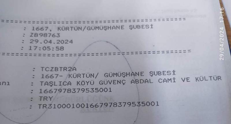 IBAN: TR31 0001 0016 6797 8379 5350 01
