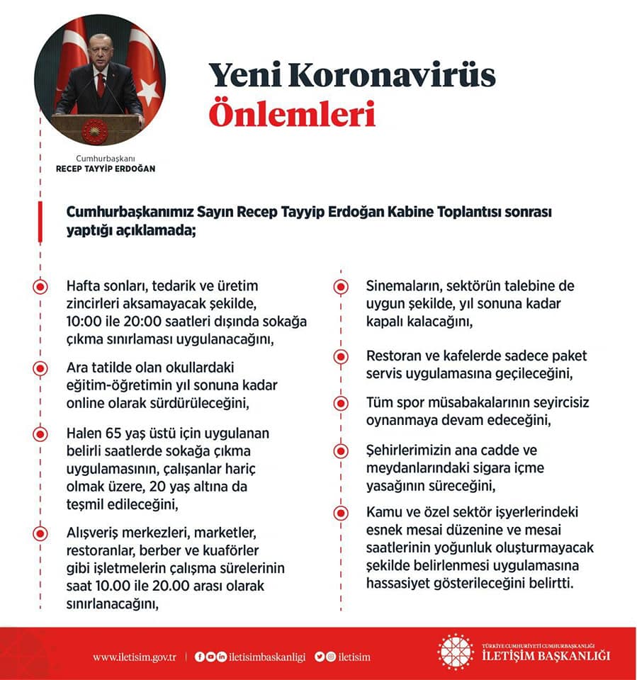 1-Hafta sonları, tedarik ve üretim zincirleri aksamayacak şekilde, 10:00 ile 20:00 saatleri dışında sokağa çıkma sınırlaması uygulanacağını,